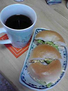 プレーンのべーグルをサンドイッチにしました♪